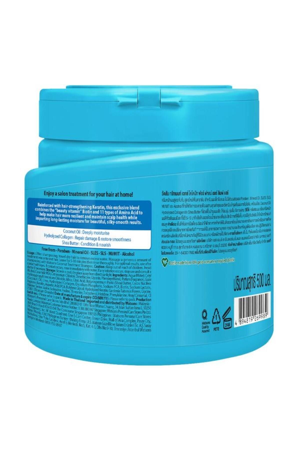Sürdürülebilir Ambalaj: Bu ürünün ambalajlanmasında kullanılan plastik %30 geri dönüştürülmüş PET materyal içermektedir.; Böylelikle kaynakların yeniden kullanımı sağlanmıştır.; Sürdürülebilir Ambalaj: Watsons Coconut Treatment Saç Kremi Ürün Özellikleri 500ml olması uzun süreli bir kullanım imkânı sağlar ve içeriğindeki hindistancevizi yağı saçı nemlendirmeye, beslemeye, yumuşaklık kazanmasına ve elektriklenmemesine yardımcı olur.; Watsons Coconut Treatment Saç Kremi Ne İşe Yarar? Bu ürün onarıcı etkisi olan bir üründür.; Yıpranmış ve onarıma ihtiyaç duyan saç tiplerinin onarılması yardımcı olur.; Watsons Coconut Treatment Saç Kremi Nasıl Kullanılır? Ürünü kullanmadan önce muhakkak kullanım talimatını okumalısınız.; Ardından saçınızı yıkayın ve şampuandan iyice arınıp arınmadığını kontrol edin.; Yeteri miktarda ürünü alın ve saçınızın en yıpranmış bölgelerine uygulayın.; Belirtilen süre kadar bekletin ve ardından durulayın.; Bu ürünü haftada 1-2 kez uygulamanız saçlarınız için faydalı olacaktır.; Watsons Coconut Treatment Saç Kremi Hangi Saç Tipleri ve Kimler için Uygundur? Bu ürün tüm saç tiplerine uygun olsa da en çok etki edeceği saç tipleri çok fazla kimyasal işlem görmüş, yıpranmış ve onarıma ihtiyaç duyan saç tipleridir.; Bu ürün hasar görmüş saçların onarılmasına fayda sağlayan bir üründür.; Watsons Coconut Treatment Saç Kremi Etken Maddeleri Nelerdir? Bu ürünün içeriğindeki hindistancevizi yağı, gliserin, hidrolize keratin, çeşitli bitkisel vitaminler bulunur.; Watsons Coconut Treatment Saç Kremi Size Nasıl Gelecek? Bu ürün size dışarıya temas etmeyecek şekilde korunaklı olarak paketlenecektir ve zarar görmeden elinize ulaşması için tüm önlemler alınacaktır.; Ayrıca geri dönüştürülebilir kutularda elinize ulaşacaktır.; Watsons Coconut Treatment Saç Kremi Saklama Koşulları Nelerdir? Bu ürünü güneş ışığına maruz bırakmadan, serin ve kuru bir mekânda muhafaza etmeye özen gösterin.; Ayrıca yeteri miktarda kullandıktan sonra kapağını sıkıca kapatın ve iyice kapandığından emin olun.
