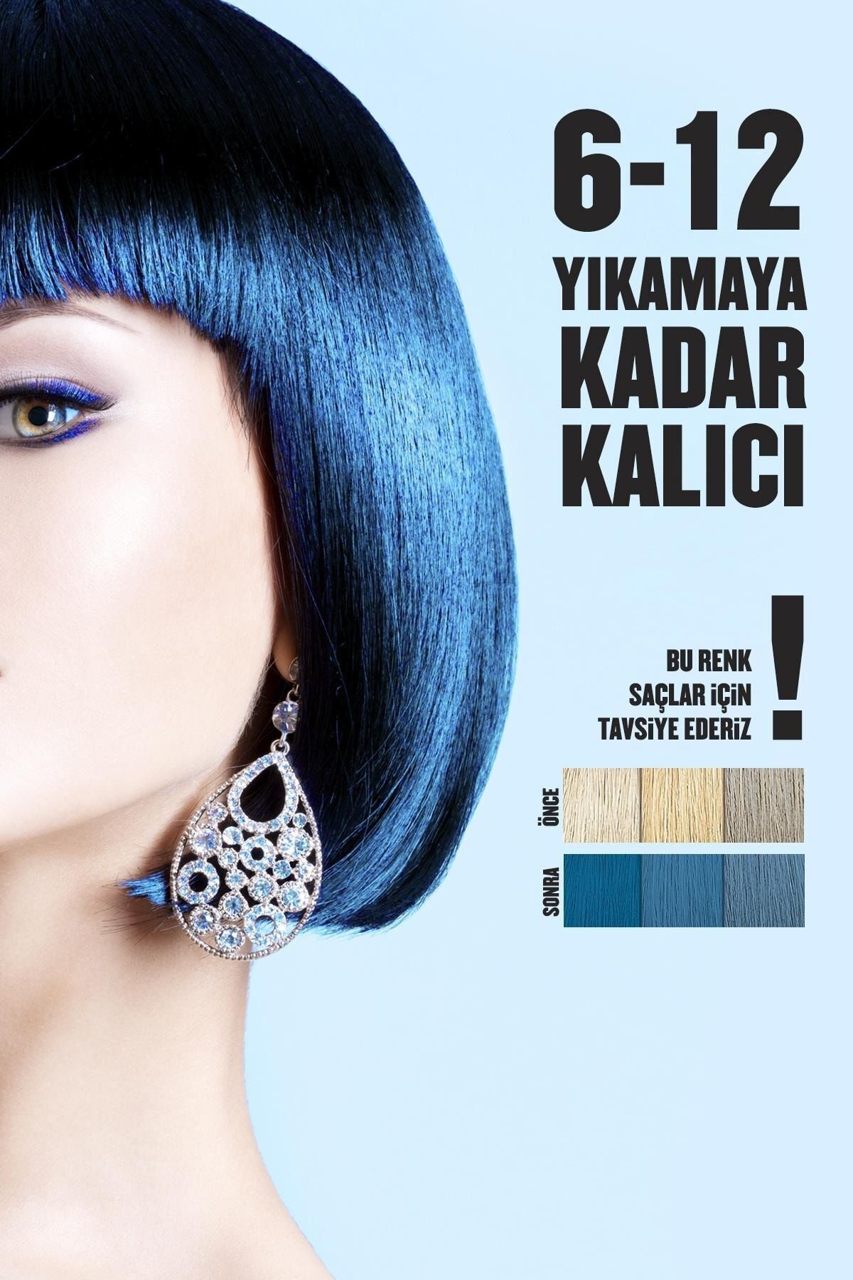 - Geçici formülü ile saçlarınıza canlı ve parlak bir mavi renk kazandırırken, doğal görünümünü korur; - Paraben ve amonyak içermeyen yapısıyla saçlarınıza zarar vermeden renk deneyimi sunar; - Pratik tüp ambalajı sayesinde kolay uygulama imkanı sağlar ve istenilen mavi tonunu evde rahatlıkla elde etmenize olanak tanır;