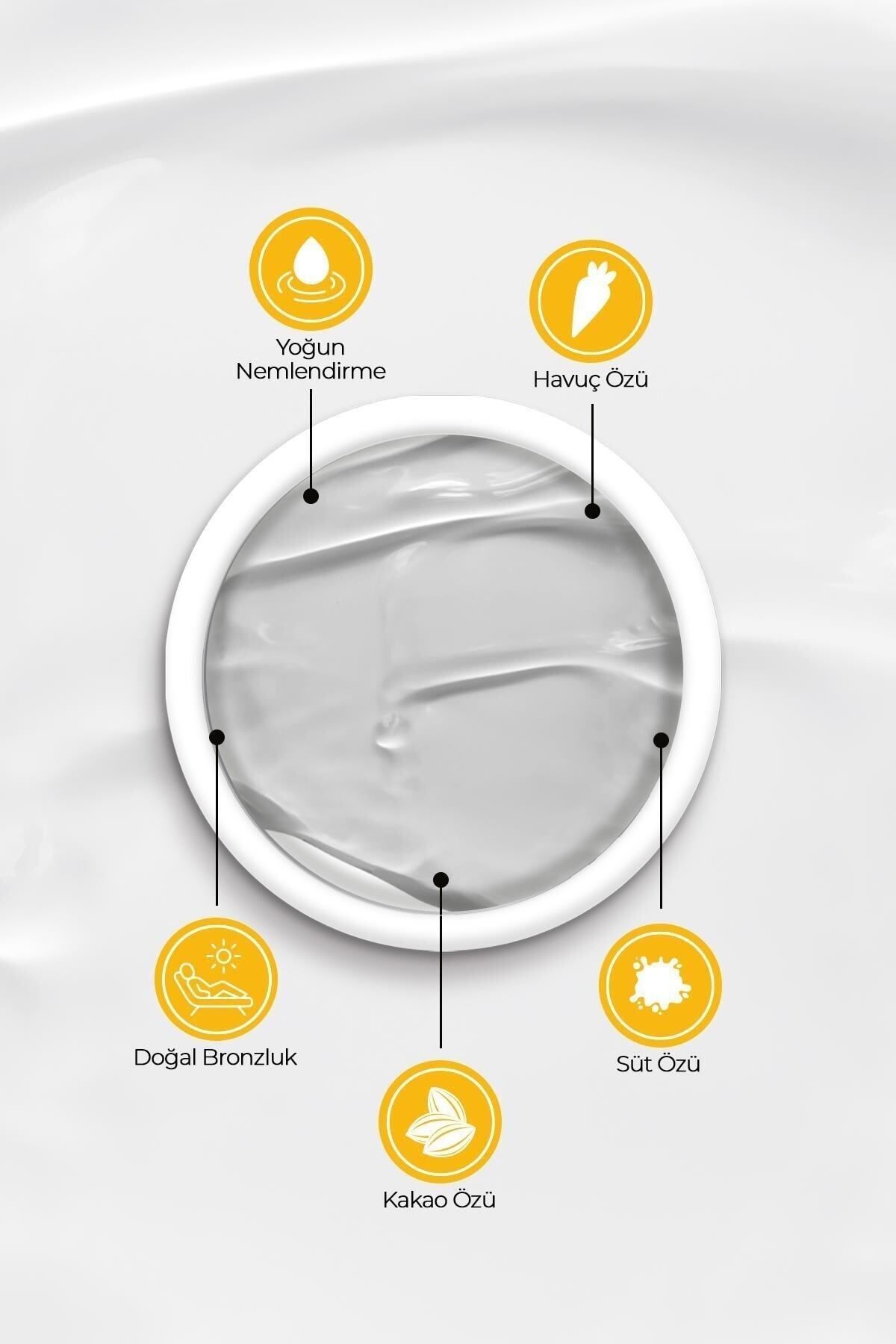 BEBAK SÜT ÖZLÜ BRONZLAŞTIRICI KREM 100ml İçeriğindeki havuç ve kakao yağı özleri ile etkili ve hızlı bronzlaşma sağlarken, formülündeki süt özleri sayesinde ekstra nem sağlayarak cildinize bakım yapmanıza yardımcı olur. ; • Etkili bronzlaştırıcı formülü ile güneşte kalma sürenizi kısaltarak gereksiz UV ışınına maruz kalmaktan korur. ; BEBAK Süt Özlü Bronzlaştırıcı Krem Nasıl Kullanılır? Güneşe çıkmadan önce yüz ve vücut bölgesine bolca ve eşit bir şekilde uygulanmalıdır. ; Etkin koruma için 2 saatte 1 tekrarlanması tavsiye edilir. ; Ürünün cilt yüzeyinde kalmasını engelleyen aktivitelerden sonra özellikle de yüzmeden sonra tekrar uygulanmalıdır. ; Kullanmadan önce çalkalanması önerilir. ; Cilt leke riskini azaltmak için günlük kullanım önerilir.;