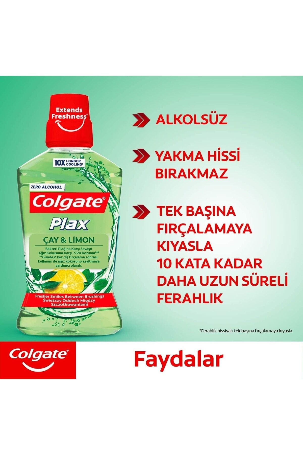 · Plax çay ve limon aromalı · Ferahlatıcı · Rahatlatıcı · Ürün hacmi 500 ml Ürün Açıklaması Saatler boyunca üstün koruma ile bakteri plağına karşı tam koruma sağlayan Colgate Plax Çay & Limon Alkolsüz Gargara ile dişleriniz daha sağlıklı. İçindekiler Aqua, Glycerin, Propylene Glycol, Sorbitol, Poloxamer 407, Aroma, Sodium Saccharin, Cetylpyridinium Chloride, Potassium Sorbate, Sodium Fluoride, Menthol, Camellia Sinensis Leaf Extract, Citrus Limon Peel Oil, CI 19140, CI 42051. Kullanım Talimatları Sodyum florür içerir. 7 yaşından küçük çocukların kullanımı için uygun değildir.