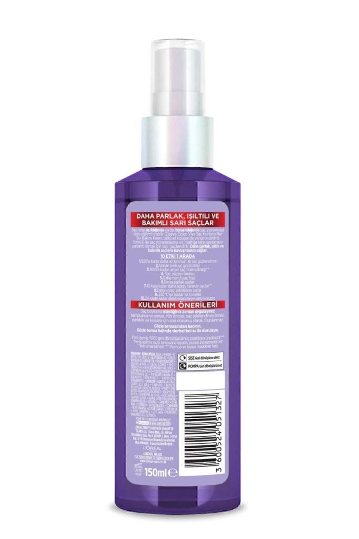 Elseve Turunculaşma Karşıtı Mor Şampuan, mor renklendiriciler ve UV filtresi içeren formülü ile karşıt tonları nötralize eder ve saçlardaki istenmeyen turuncu, sarı renkteki yansımalara karşı savaşır. ; İlk kullanımdan itibaren etkisini göstermeye başlar.Haftada 1 kere ıslak saçınıza şampuan rutininiz sırasında 1-3 dakika masaj yaparak uygulayın ve iyice durulayın. ; Elseve Saç Kurtarıcı Mor Sıvı Bakım Kremi, bitkisel kolajen ile zenginleştirilmiş formülü ile saç yıpranmasına ve matlığa karşı savaşmaya yrdımcı olarak saçı güçlendirir. ; Daha parlak, ışıltılı ve bakımlı saçlara kavuşmanızı sağlar. ; Saç boylarına istediğiniz zaman uygulayınız: şampuanlama sonrası, fön öncesi, saç şekillendirme öncesi, parlaklık ve koruma için son dokunuş olarak. ; Durulanmaz. ; 10 ETKİ 1 ARADA%99' kadar daha az kırılma* ile saç güçlendirmeAzalan kırık uç görünümü%9.5'a kadar artan saç fiberi kalınlığı**Saç yüzeyi onarıcıDaha nemli saç hissiDaha parlak saçlar10 kata kadar daha kolay taranan saçlar**Daha kolay şekillenen saçlar230°C'ye kadar ısı koruması24 saate kadar elektriklenmeye karşı koruma;
