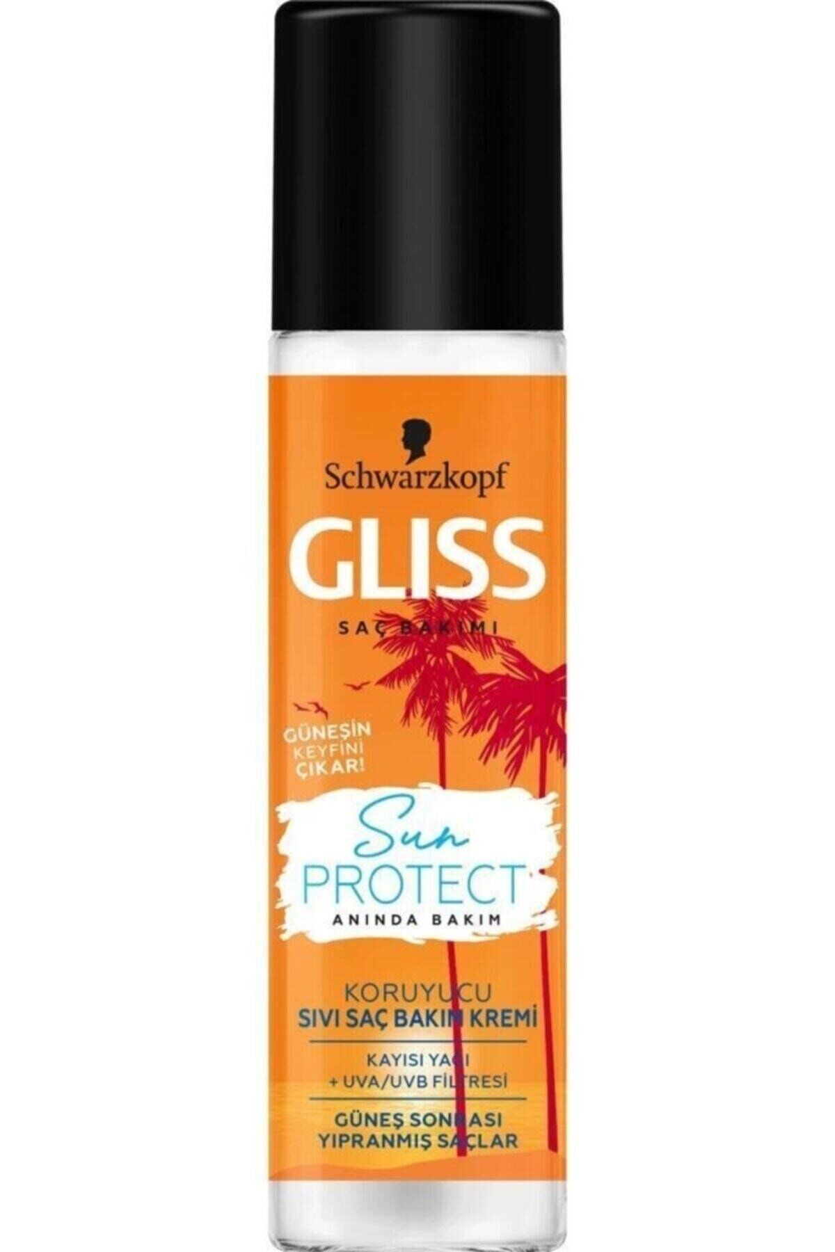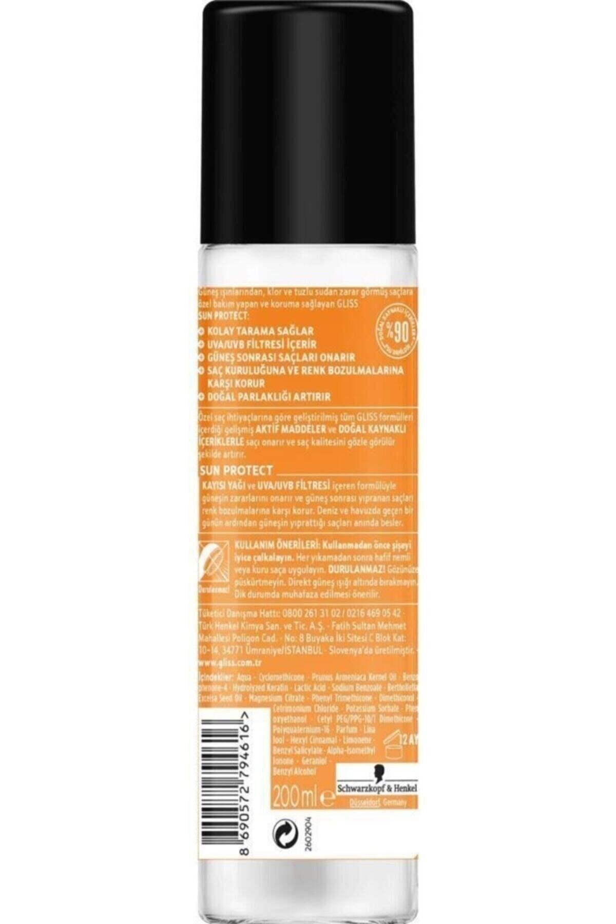 - Güneşin zararlı etkilerine karşı tam koruma sağlayan Sun Protect Güneşe Karşı Koruyucu Durulanmayan Sıvı Saç Kremi ile dışarıda geçirilen her anınız güvenle geçsin.; - Tüm saç tipleri için uygun formülüyle herkesin kullanımına açık olan bu krem, saçlarınızın ihtiyaç duyduğu bakımı sunar.; - Unisex tasarımı sayesinde hem kadınlar hem de erkekler tarafından tercih edilebilen bu ürün, cinsiyet ayrımı gözetmez.; - Günlük hayatta veya denizden çıktıktan hemen sonra saçlarınıza sprey şeklinde sıkarak uygulamanız yeterlidir; saçlarınızın doğal parlaklığını artırırken aynı zamanda kolay tarama sağlar.; - İçeriğindeki UVA/UVB filtreleri sayesinde saçlarınızın renk bozulmalarına karşı korunmasına yardımcı olurken, güneş sonrası da onarım yapar.; - Durulanma gerektirmeyen yapısıyla pratiklik kazandırarak zaman kazandırır; hızlı ve kolay uygulama avantajıyla günlük rutininize hız katmanızı sağlar.