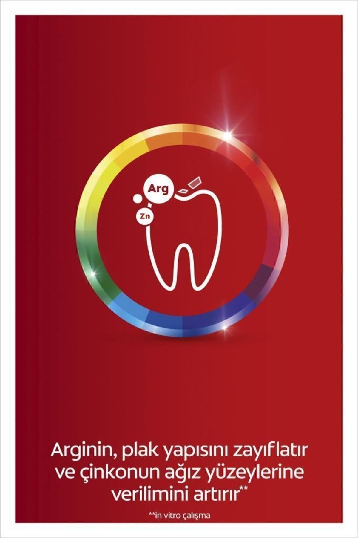 Diş Eti problemlerine etikisi klinik olarak kanıtlanmıştır. ; Colgate Total'in Çinko ve Arginin içerikli çığır açan formülü, Komple Ağız Sağlığı için diş, dil, yanaklar ve diş etlerinin 12 saate kadar korunmasına yardımcı olur* *4 hafta boyunca günlük kullanımla diş, dil, yanaklar ve diş etlerinde 12 saate kadar koruma Çinko koruyucu mineral kalkanı oluşturur. ; Arginin Plak yapısını zayıflatmaya yardımcı olur ve çinkonun ağız yüzeylerine taşınmasını artırır*** *** in vitro çalışma. ; • Diş Çürüklerine Karşı Korumaya yardımcı olur • Plağı Gidermeye yardımcı olur • Diş Etlerini Güçlendirmeye yardımcı olur •Diş Minesini Güçlendirmeye yardımcı olur •Tartarı Önlemeye yardımcı olur •Hassas Dişler •Diş Yüzey Lekelerini Temizler ve Nefesi Tazeler";
