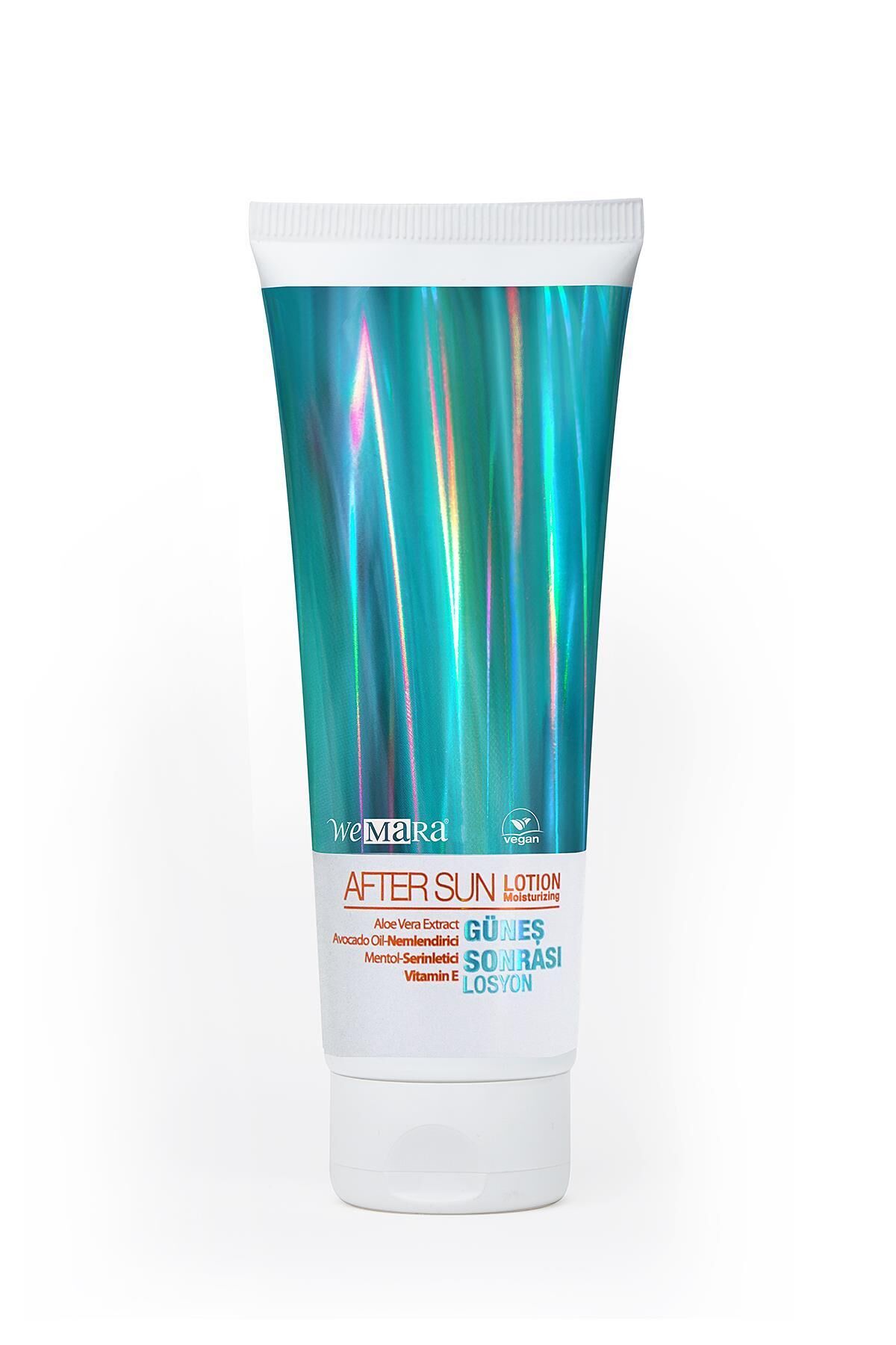 WEMARA AFTER SUN LOTION Wemara After Sun Lotion, Aloe Vera, Avokado Yagı ve E vitamini ile zenginleştirilmiş formülüyle gün boyu günee maruz kalan cildinizin nemlenmesini destekler. ; Cildi besleyip güçlendirirken cildin ipeksi, ışıltılı, nemli ve canlı bir görünüme kavuşmasına yardımcı olur._ Bronz teni ferahlatmaya destek olur. ; Cilt tarafından hızlıca emilerek hoş bir koku kazandırır. ; İçerik : Aqua, Cetearyl Alcohol, Glycerin, Isopropyl Myristate, Paraffinum Liquidum, Alcohol Denat., Ceteareth-25, Glyceryl Stearate, Parfum, Phenoxyethanol, Dimethicone, Carbomer, Menthol, Ethylhexylglycerin, Mica, Persea Gratissima Oil, Tocopheryl Acetate, Aloe Barbadensis Leaf Extract, Potassium Sorbate, Coumarin, Limonene, CI 77491, CI 77891. ; Kullanım şekli: Günlük olarak, bolca ve eşit bir biçimde güneşe çıktıktan veya duştan sonra ya da cildinizin kurudugunu hissettiginiz her an uygulayabilirsiniz. ; Uyarılar: Sadece harici kullanım içindir. ; Çocukların ulaşamayacagı yerde muhafaza ediniz. ; Direkt güneş ışıgı ve aşırı sıcak ortamda bırakmayınız. ; Göz ile temasından kaçınınız. ; Gözle temas halinde derhal bol su ile durulayınız. ; Bileşiminde yer alan herhangi bir maddeye karşı aşırı duyarlılıgı olan kişilerde kullanılmamalıdır. ; Beklenmeyen bir etki görüldügünde doktorunuza başvurunuz.;